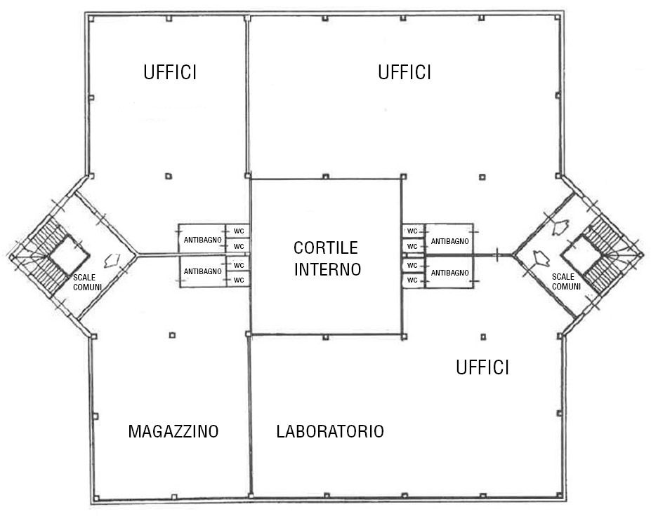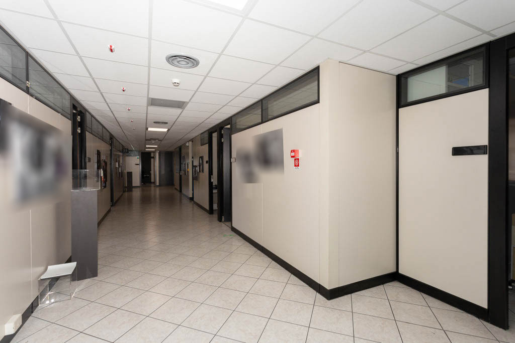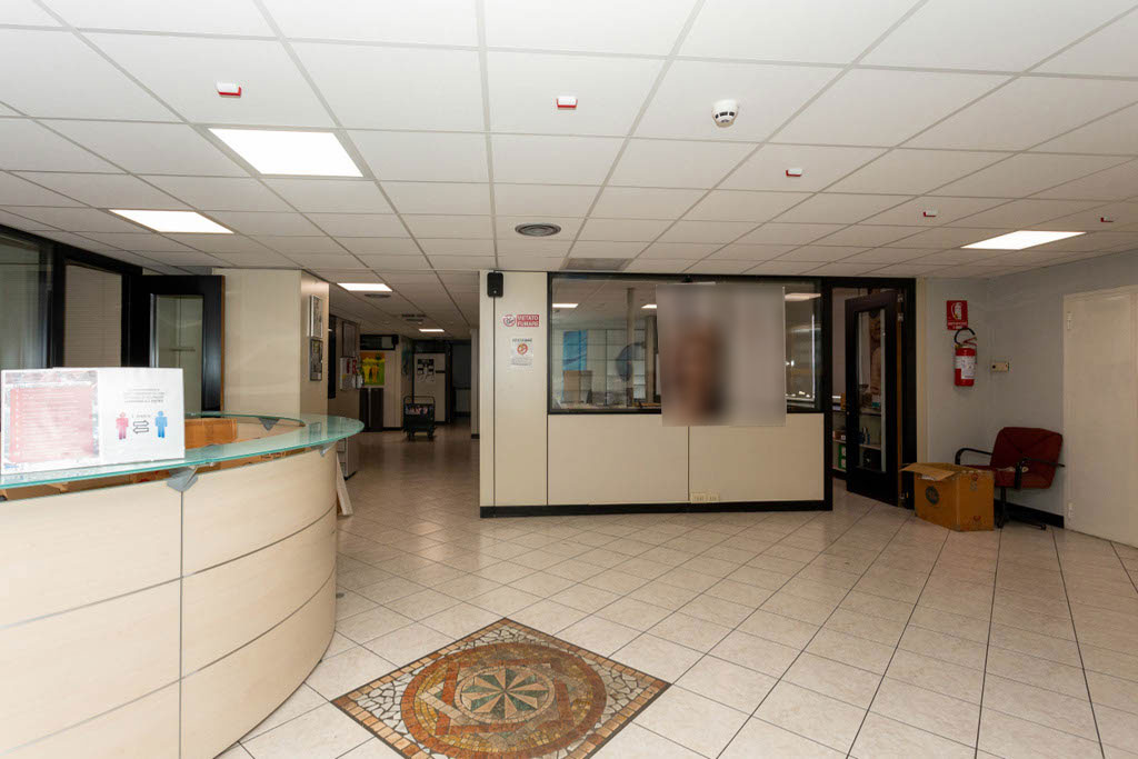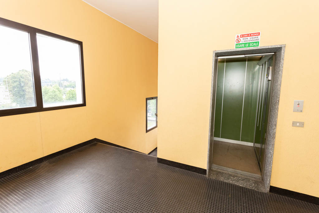 La porzione in vendita occupa l’intero secondo piano ed è accessibile tramite due scale e due ascensori/ montacarichi. Attualmente, l’immobile è suddiviso in diverse aree funzionali: