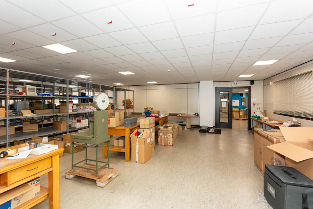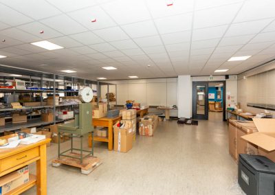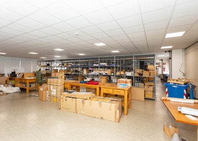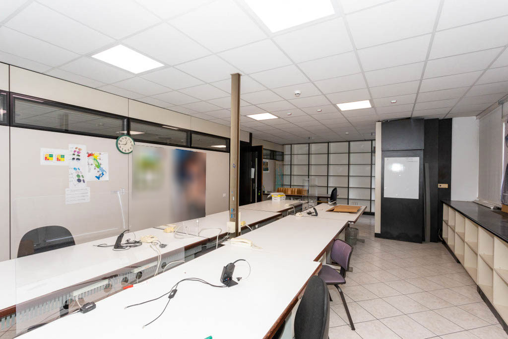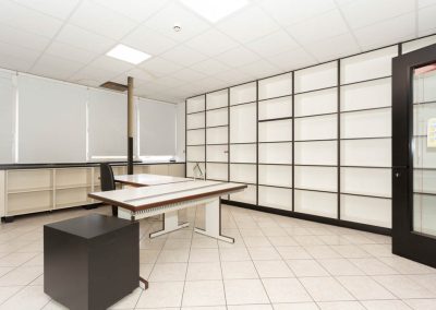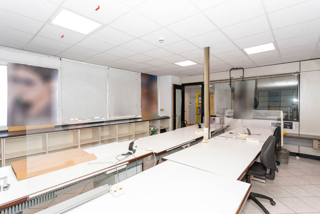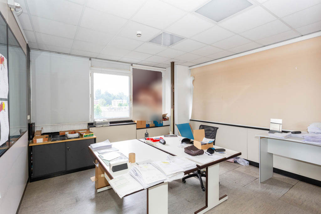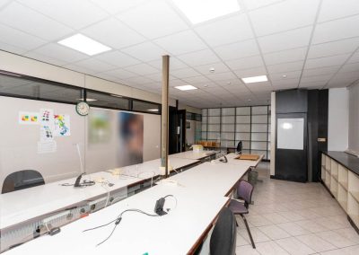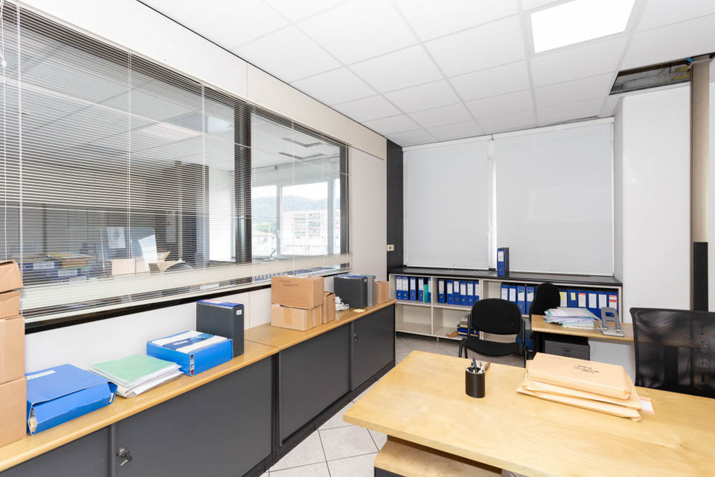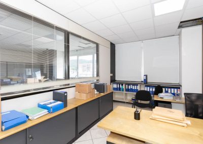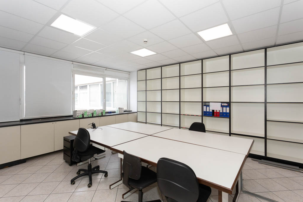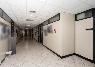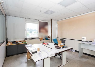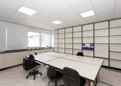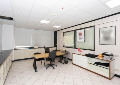 L’area dedicata agli uffici è suddivisa con pareti mobili ed è dotata di impianti di riscaldamento e climatizzazione, cablaggio e controsoffitto con corpi illuminanti integrati.